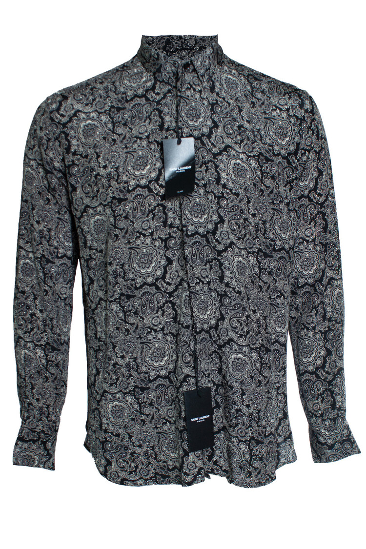 • Saint Laurent, Zwart overhemd met paisleyprint 2018. Het artikel is nieuw met label.