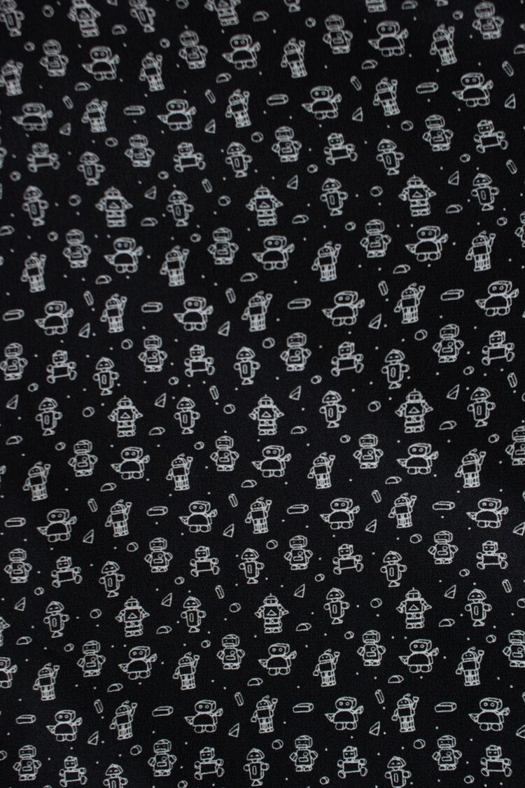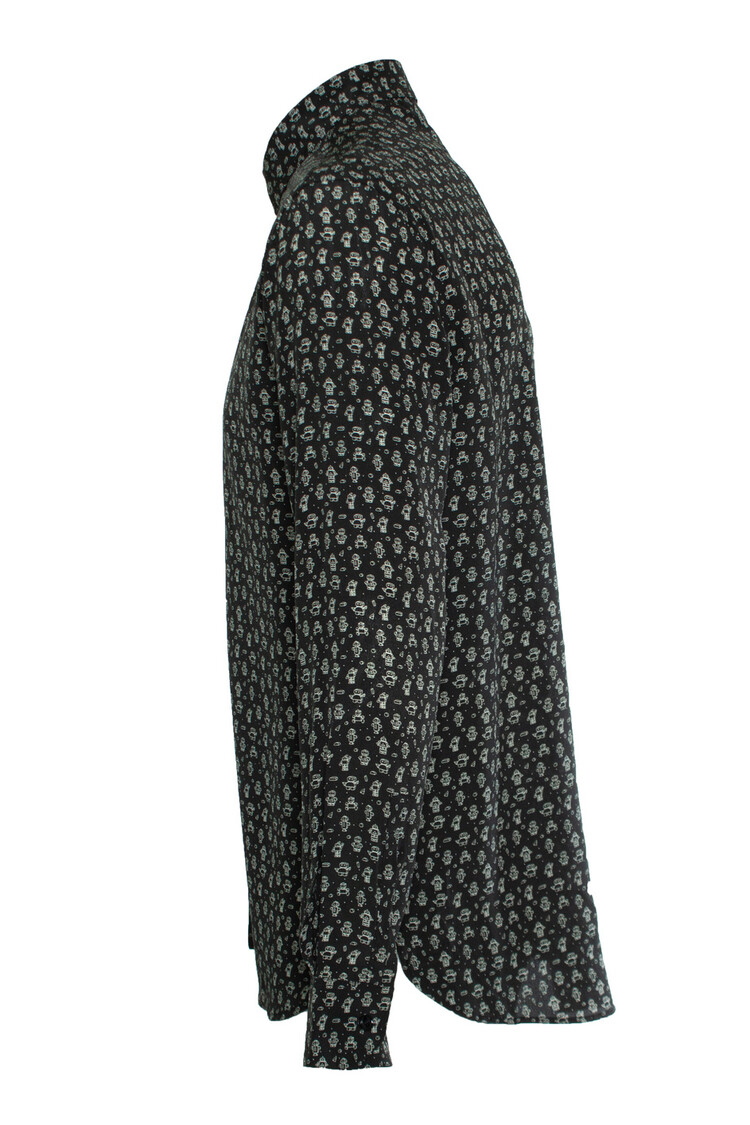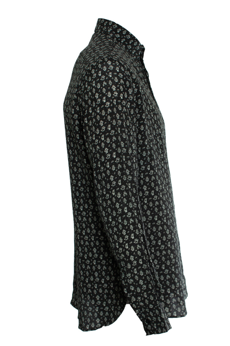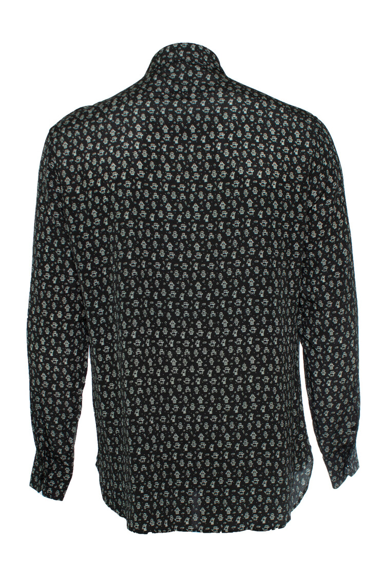 • Saint Laurent, Zwart zijden overhemd met robotprint. Het artikel is nieuw - ongedragen.