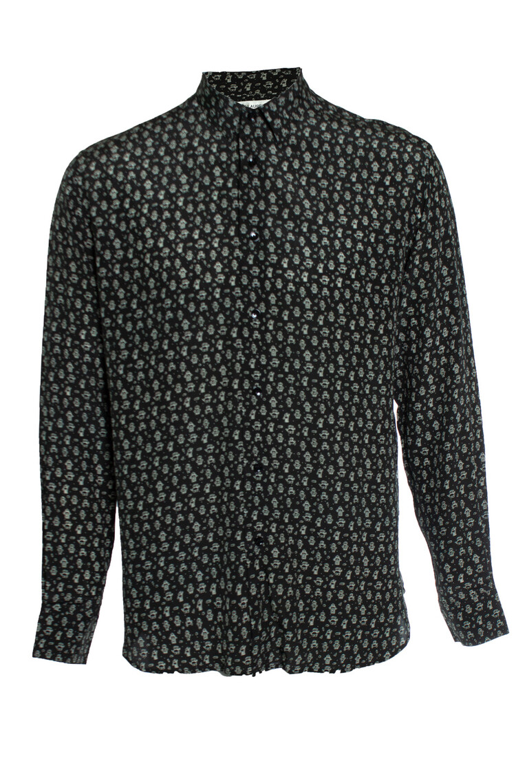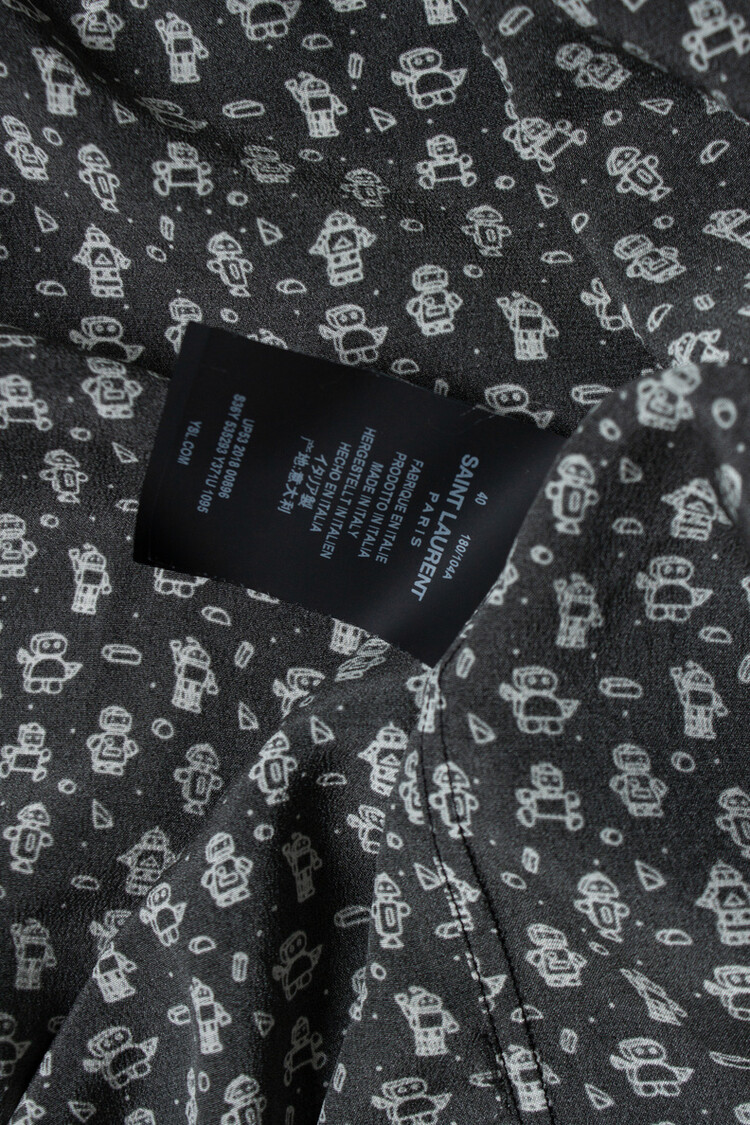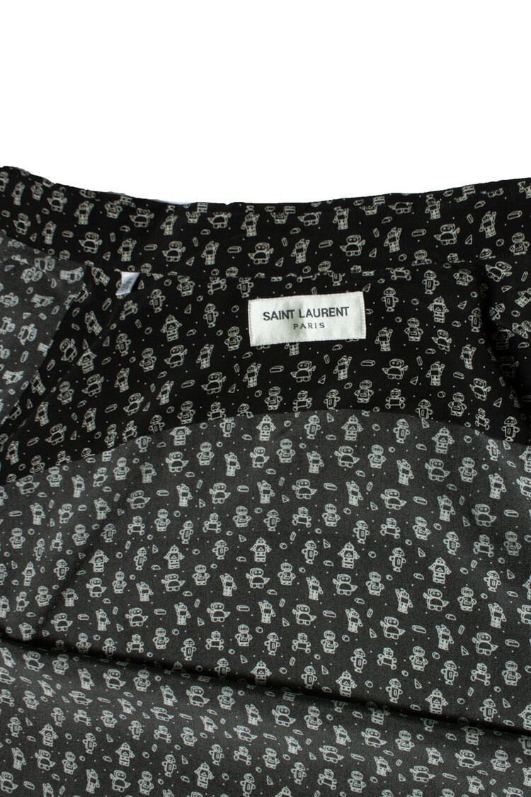 Saint Laurent, Zwart zijden overhemd met robotprint