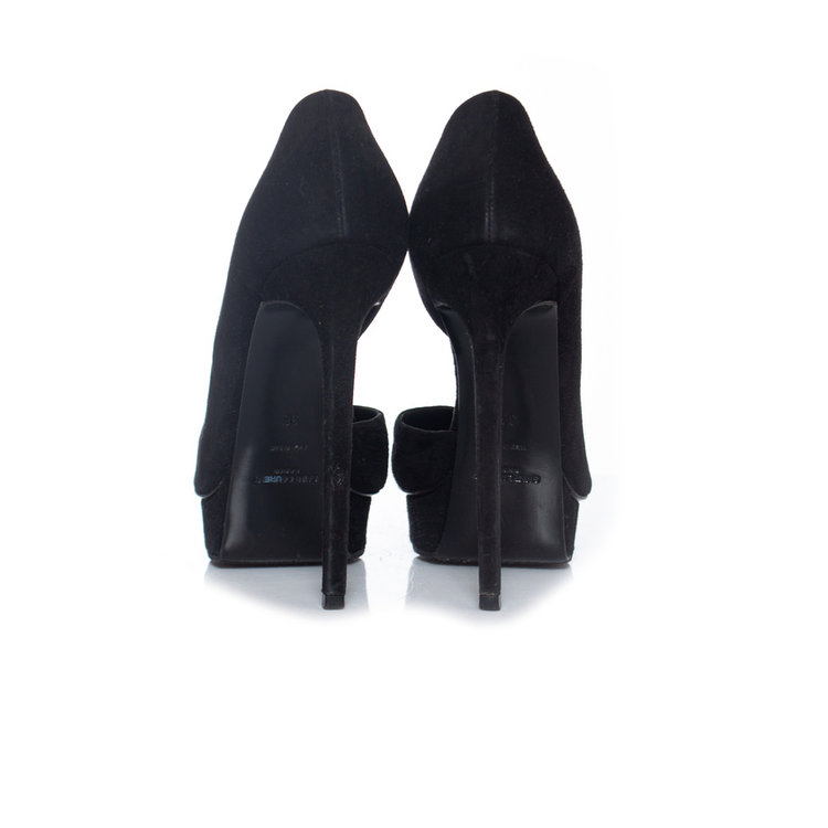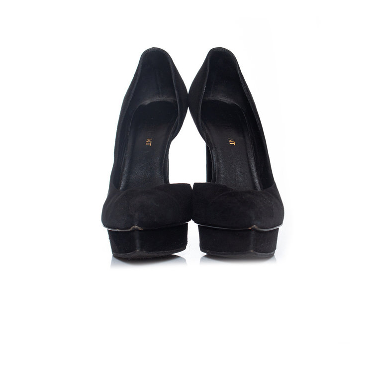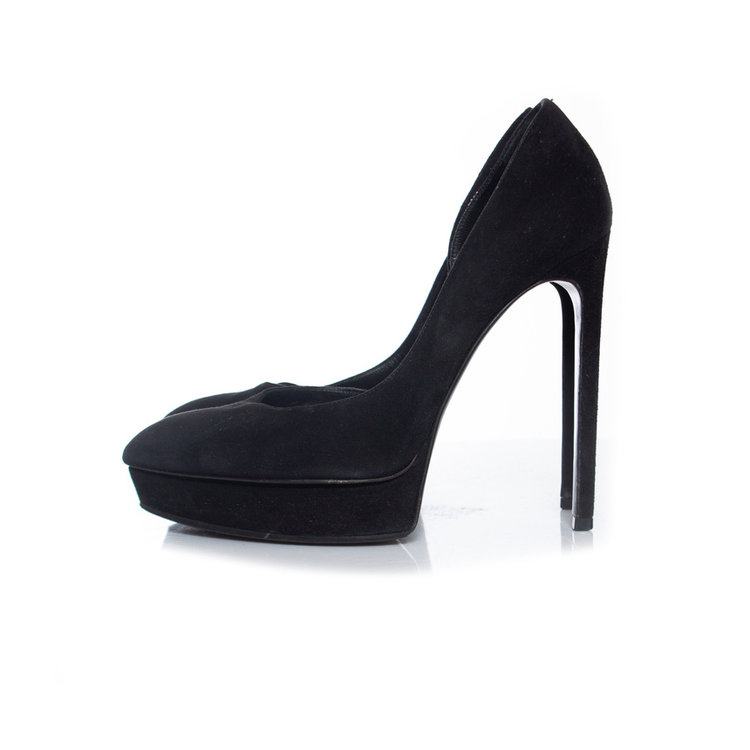 Saint Laurent, zwarte suède platform klassieke Janice 105 D' Orsay pumps. Dit item heeft kleine gebruikssporen, over het algemeen in goede staat. Zool is verstevigd.