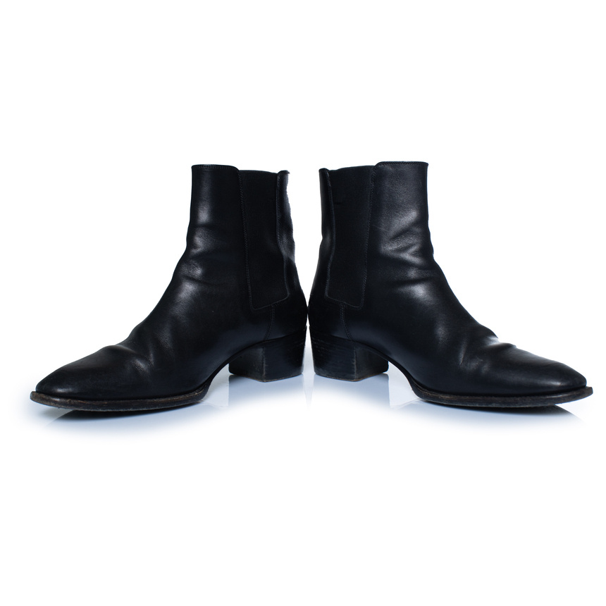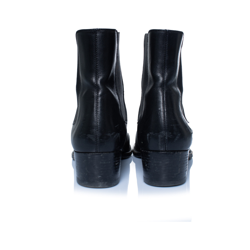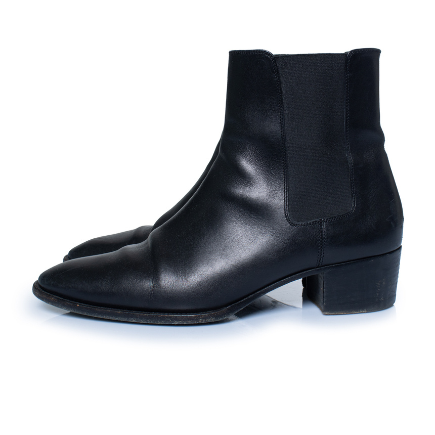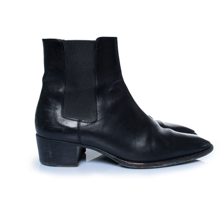 • Saint Laurent, zwarte leren Chelsea boots. Het artikel verkeert in goede staat, met wat slijtplekken op het leer en de hak.