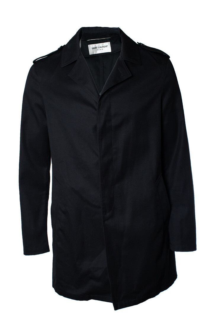 • Saint Laurent, zwarte trenchcoat van katoenmix, 2019. Het artikel verkeert in zeer goede staat.