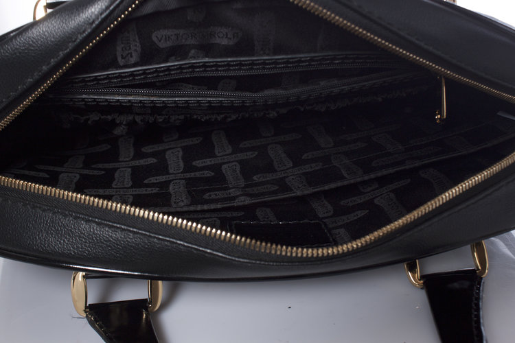 • SAMSONITE BLACK LABEL by VIKTOR & ROLF, laptoptas van zwart kunstleer met structuur in combinatie met zwart glimmend kunstleer. Wordt geleverd met een schouderriem en een stofzak. Is slechts eenmaal gebruikt en verkeert in een zeer goede staat.
