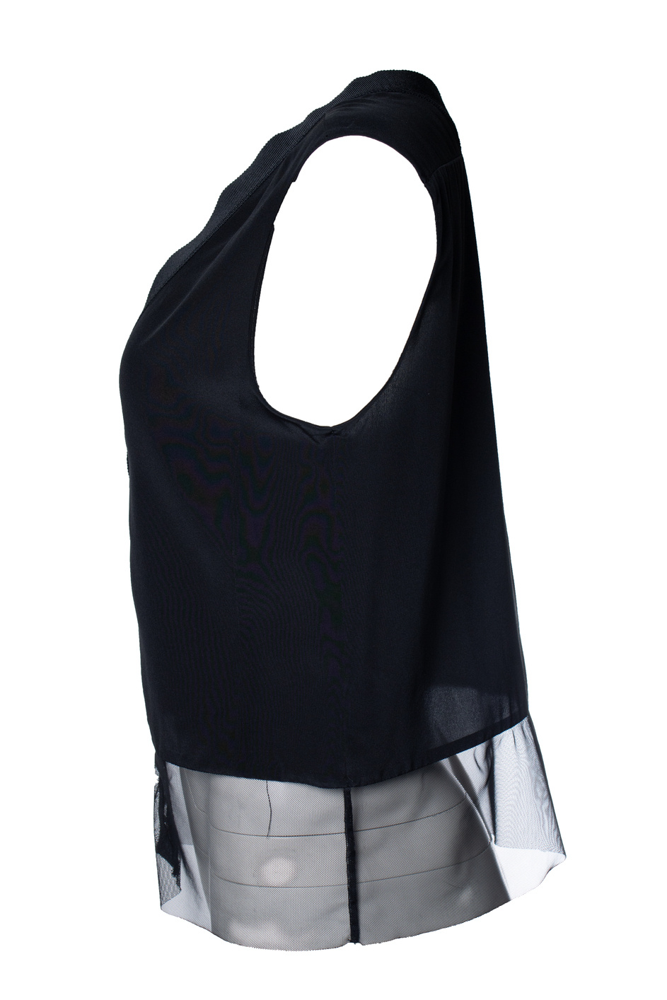 • Sandro, zwarte mouwloze transparante top. Het artikel verkeert in zeer goede staat.