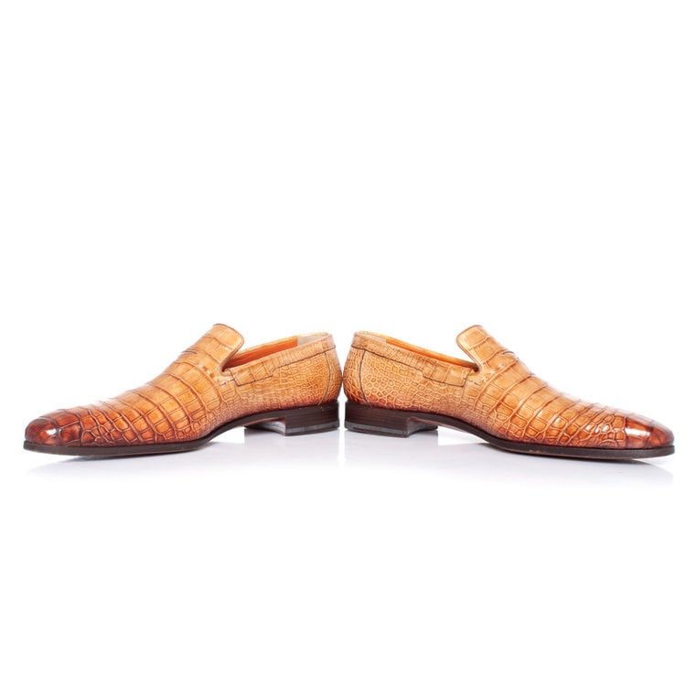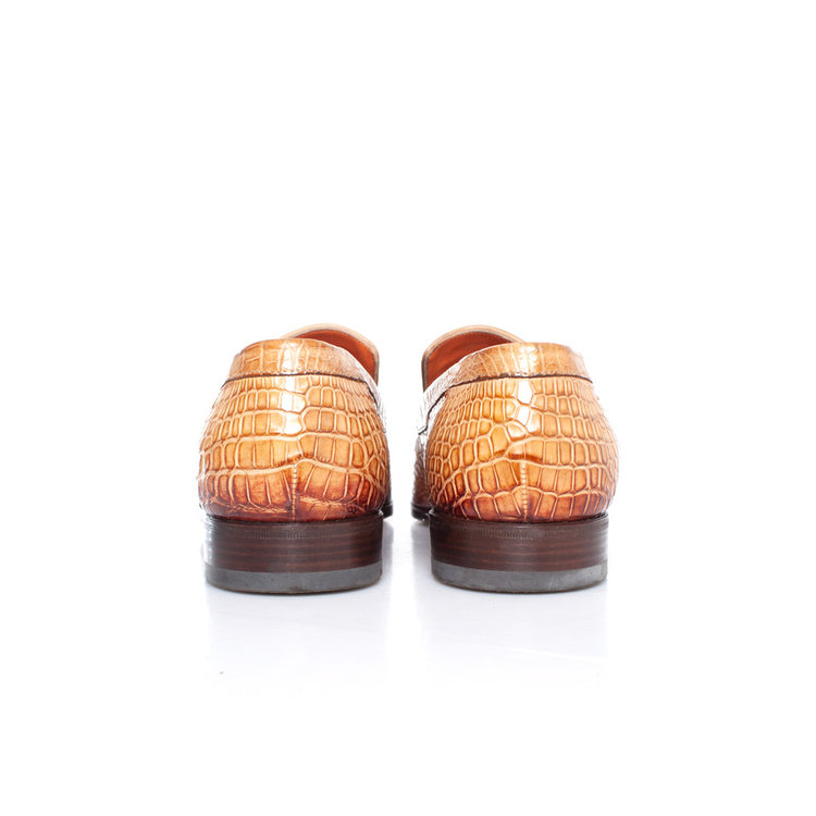 • Santoni, alligator leren loafers in bruin. Het item is in zeer goede staat en wordt geleverd met shapers, dustbag en doos.