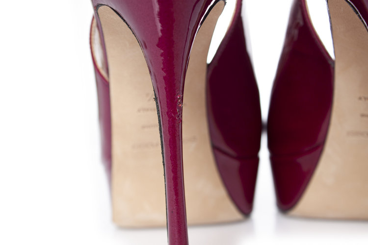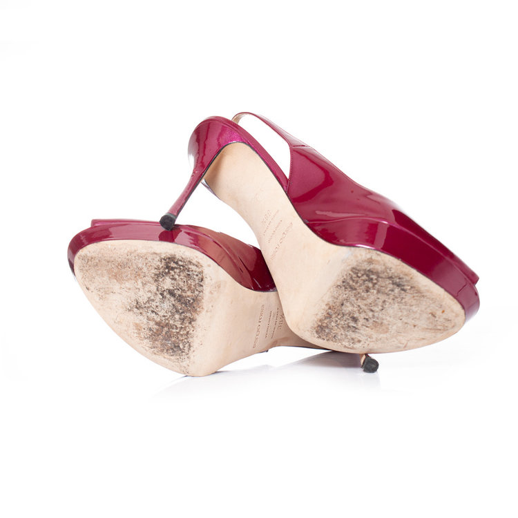 • Sergio Rossi, slingback lakleer sandaal met open neus. Het artikel is in goede staat. Linker hak is het leer licht gekruld.