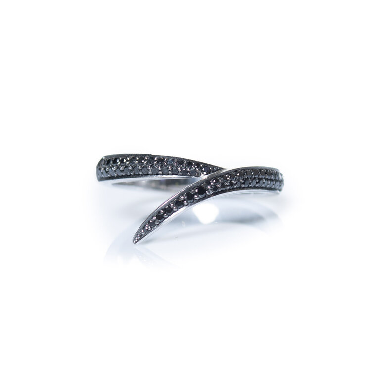 • Shaun Leane, interlocking enkele ring in 18kt wit goud & zwarte diamanten. Het item is in zeer goede staat.