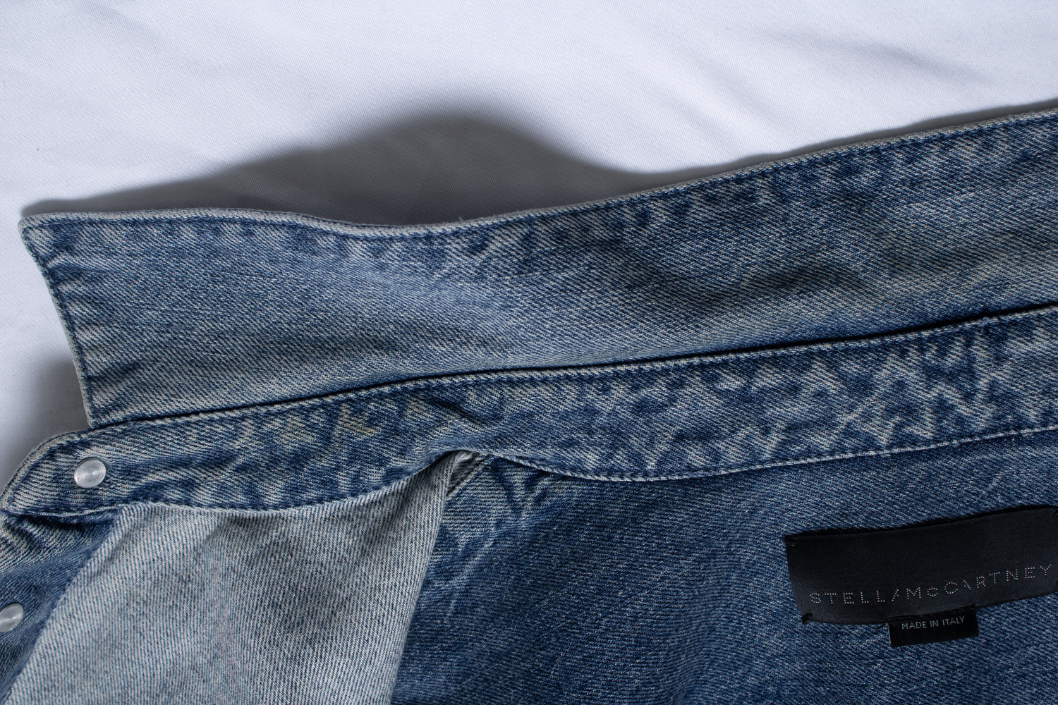 • Stella McCartney denim blouse. Het item is in goede staat, lichte verkleuring in de hals.