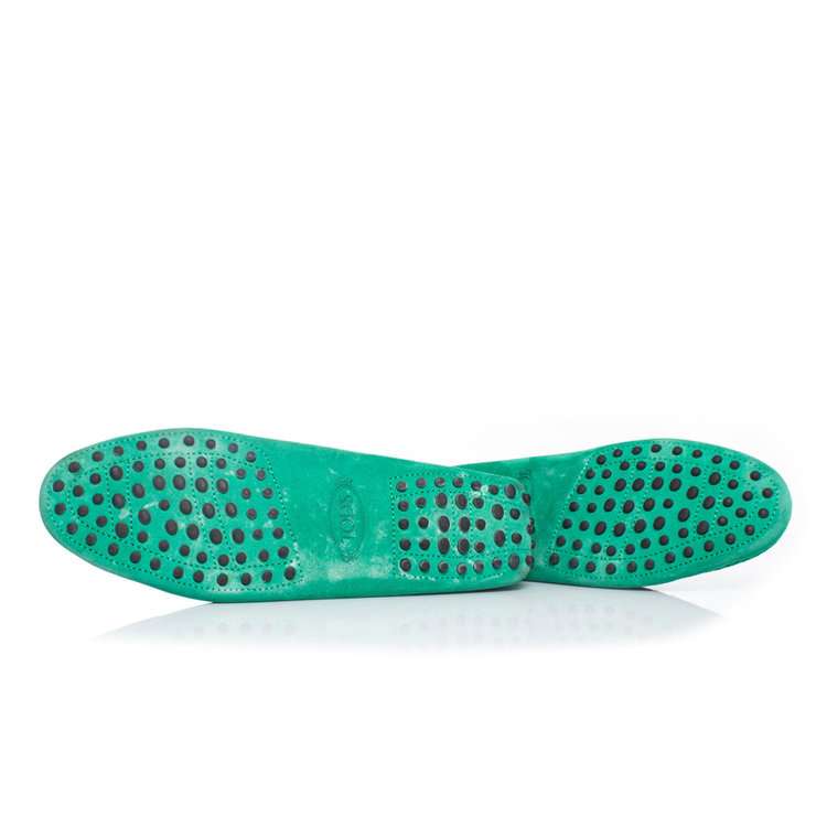 • Tod's, groene suède loafers. Dit item is weinig gedragen en verkeert in goede tot zeer goede staat.