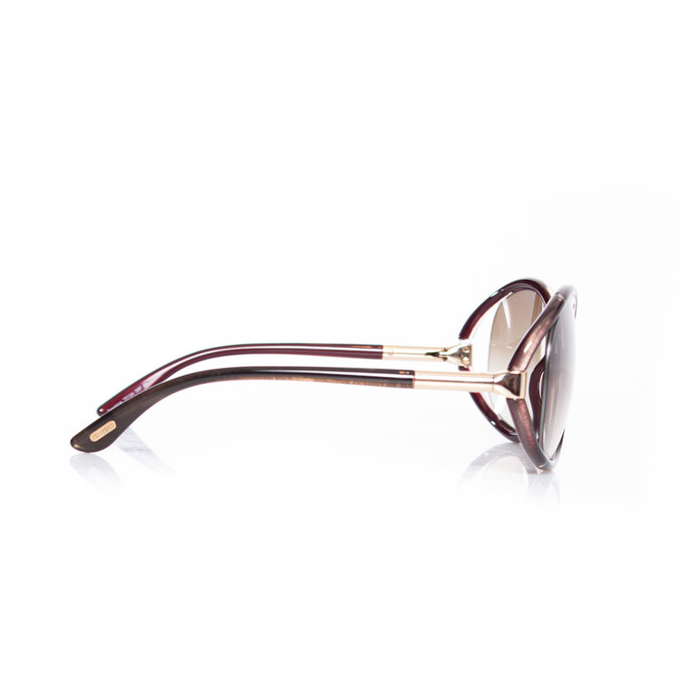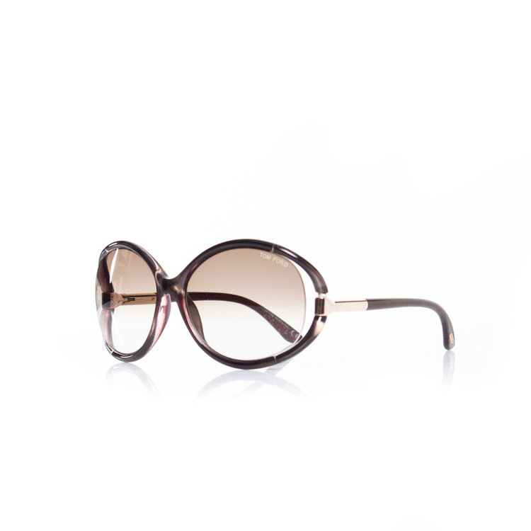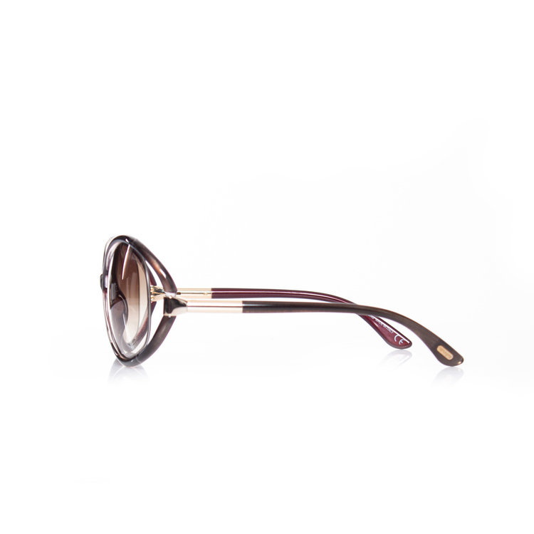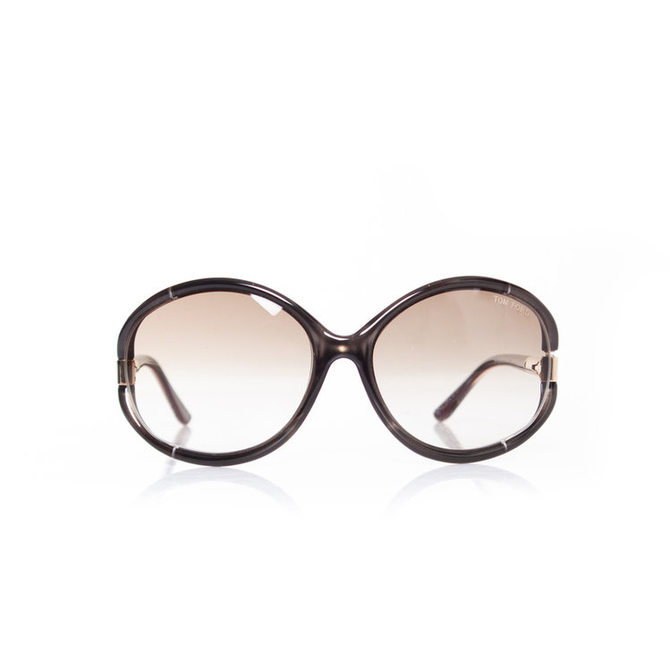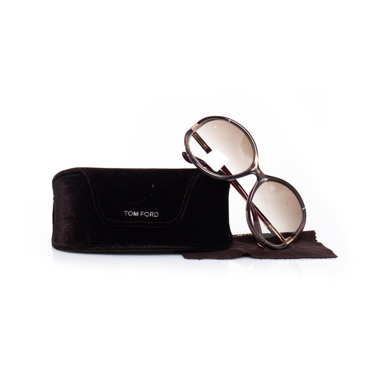 Tom Ford, bruine Sandrine zonnebril met verloop. Dit stuk heeft een lichte kras op de rechter lens verder in zeer goede staat. Komt met doos en stofdoek.