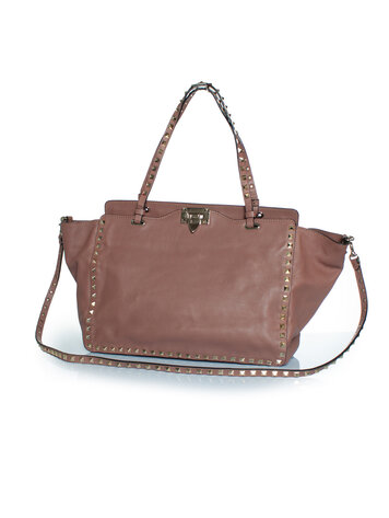 Valentino Garavani, Medium rockstud leren tas in beige. Het item is in zeer goede staat met een paar kleine deukjes en krasjes op het leer. Item wordt geleverd met schouderband en stofzak. Zeer kleine verkleuring aan een van de zijkanten. Komt met stofzak