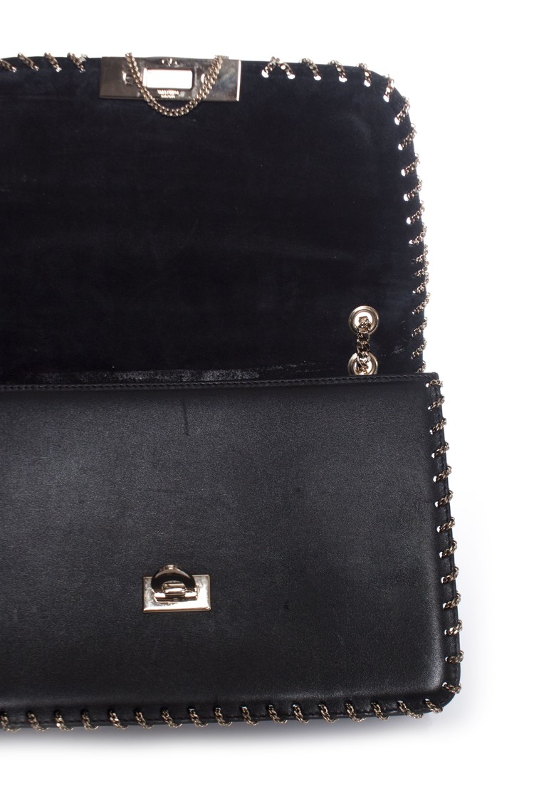 Valentino, Demilune leren schoudertas met kettinkjes in zwart. Dit item is nieuw met alle kaarten, stofzak en doos. Heeft wat kleine krasjes op het leer van de kettingen.