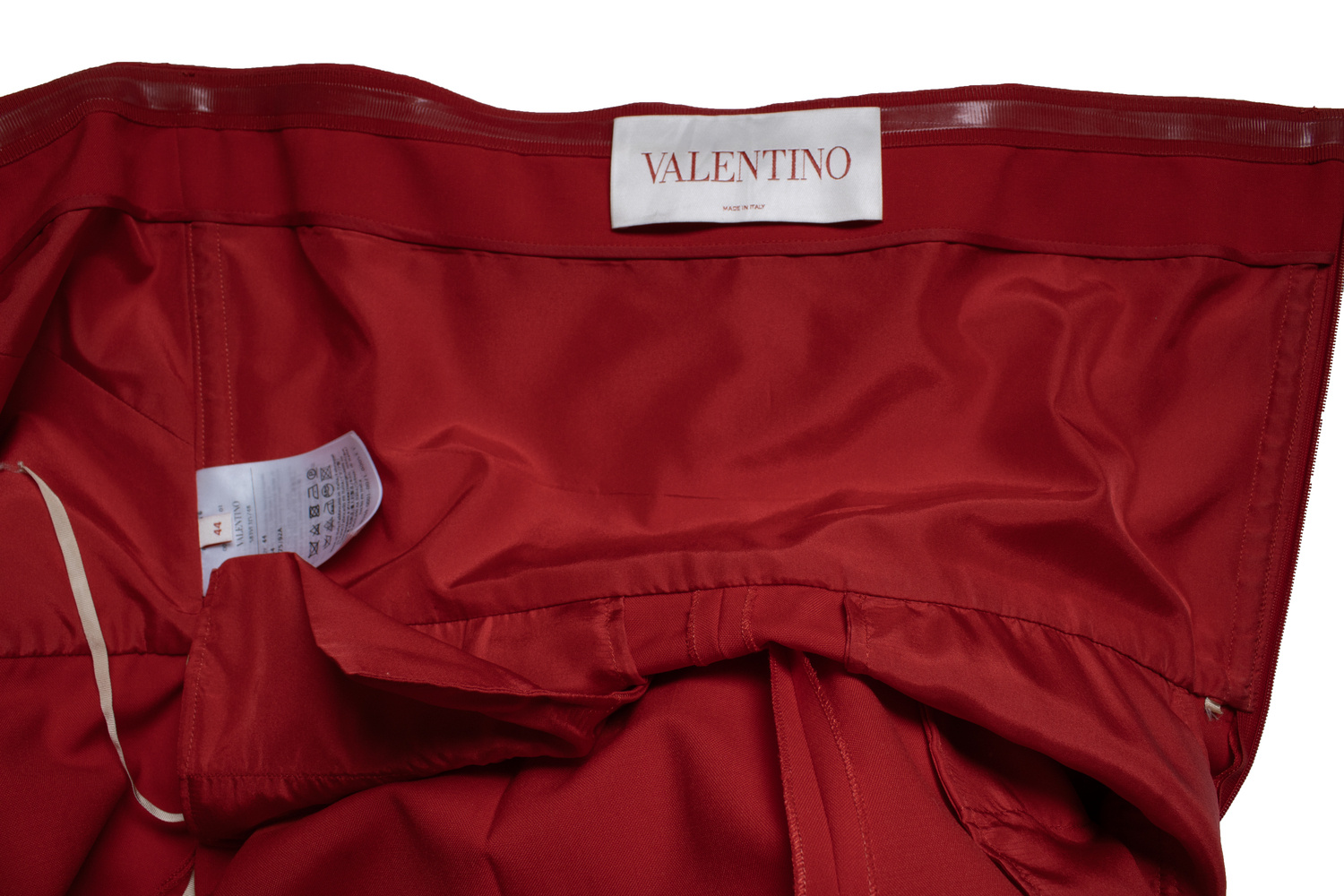 • Valentino Garavani, mouwloze jumpsuit in rood. Het item is in goede staat. Kleine vlek op de rechterborst.