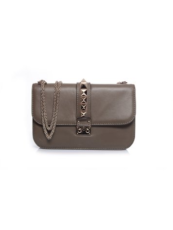 • Valentino, Rockstud schoudertas met gitaarriem in zwart leer. Dit artikel heeft enkele kleine gebruikssporen maar verkeert in een goede staat.