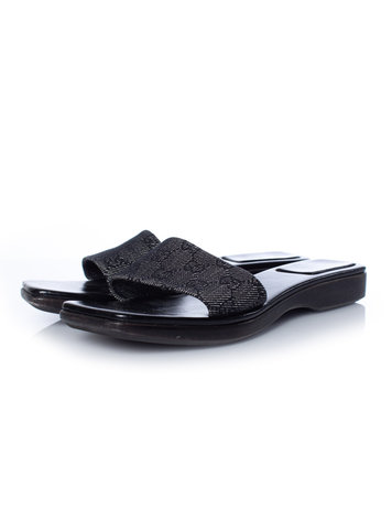 Gucci, zwarte canvas monogram sandalen. Het item is in zeer goede staat en wordt geleverd met dustbag.
