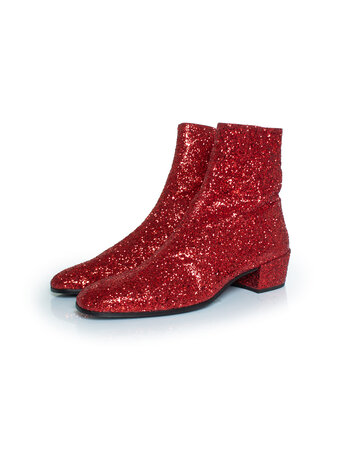 Saint Laurent, Rode glitter Caleb laarzen met rits. Het artikel is nieuw - ongedragen.
