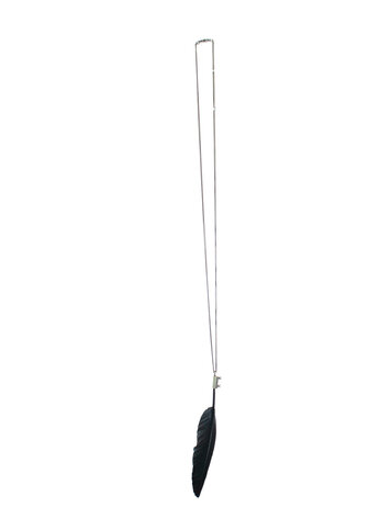 Ann Demeulemeester, metalen ketting met zwarte veer. Het artikel verkeert in zeer goede staat.