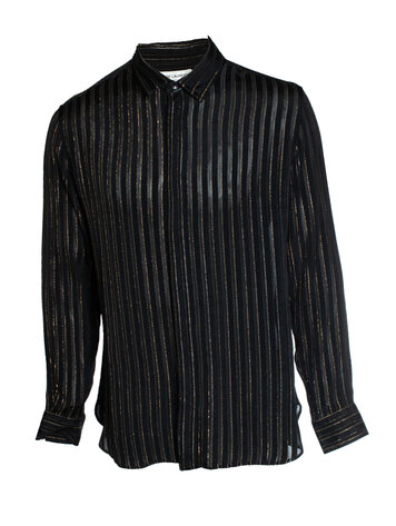 Saint Laurent, 2022 zwart-gouden doorschijnend gestreept lurex overhemd. Het artikel verkeert in goede staat.