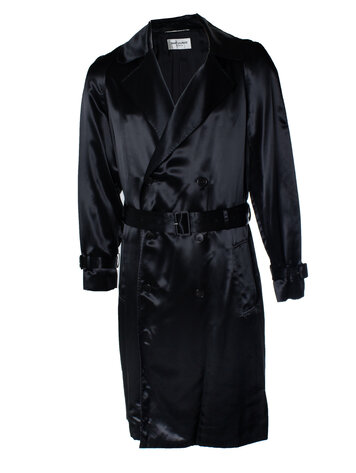 Saint Laurent, zwarte glanzende trenchcoat 2021. Het artikel verkeert in zeer goede staat.