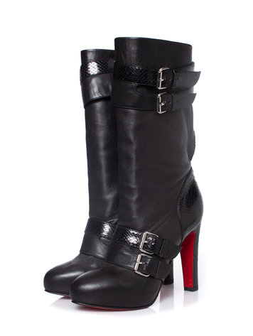 Christian Louboutin, Loubi Bike plateau laarzen in zwart leer met python. Het item is een keer gedragen en is in zeer goede staat, komt met doos en dustbag.