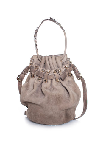 Alexander Wang, Bruin leren bucket bag met zilverkleurig hardware. Het item heft wat kleine scheurtjes in de bies van de schouderriem maar is verder nog in goede staat.