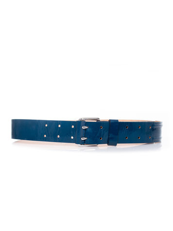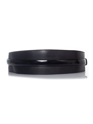 Gianni Versace, Zwart lederen dubbele tailleriem in leer en lakleer. Het item heeft lichte kreukels in het materiaal, over het algemeen in goede staat.