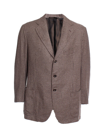 Cesare Attolini, Bruine pied de poule cashmere blazer. Het item heeft een klein scheurtje in de voering bij de linker oksel, verder is het item in een goed tot zeer goede staat.