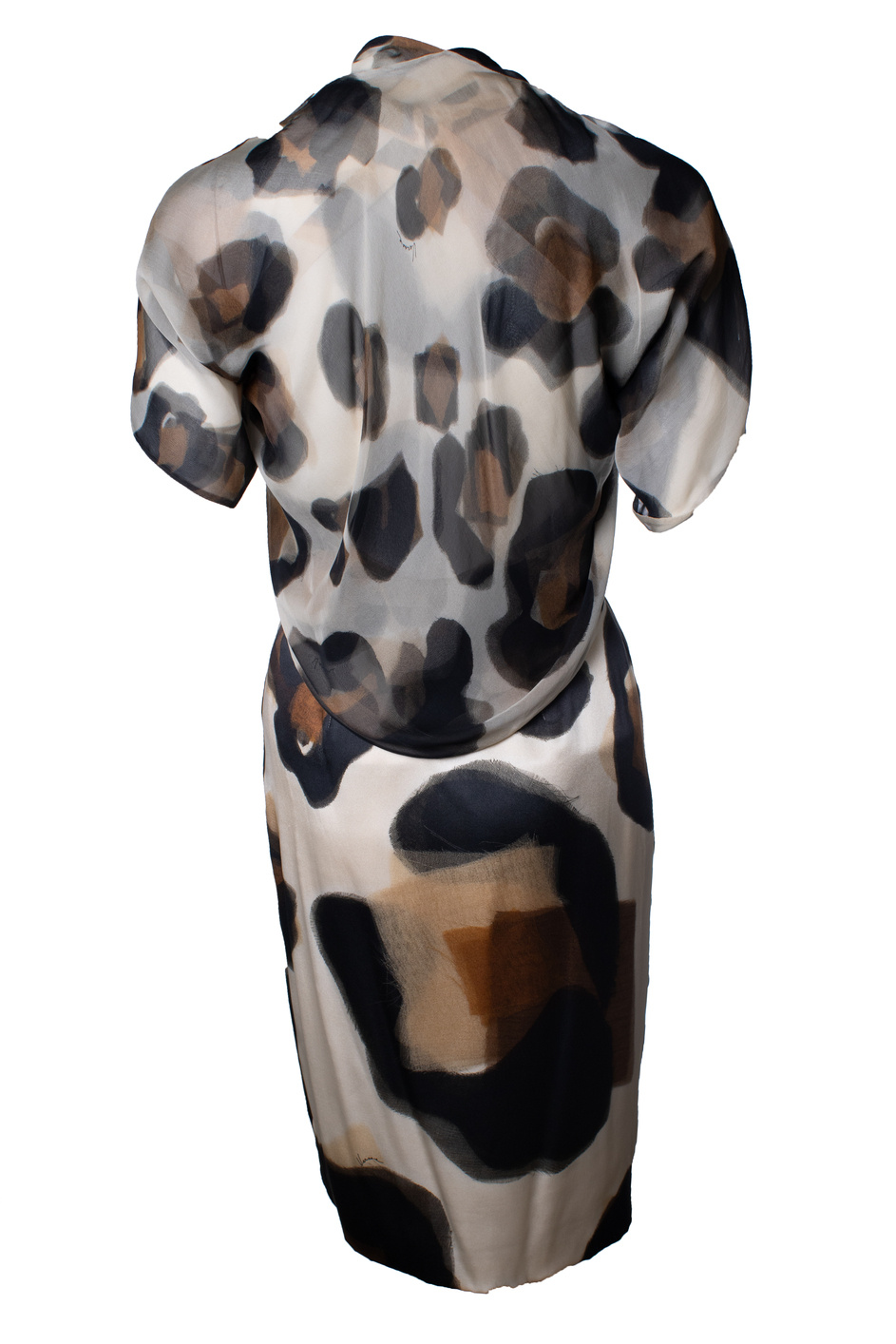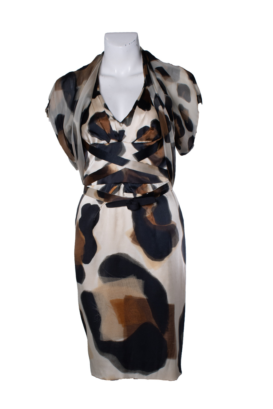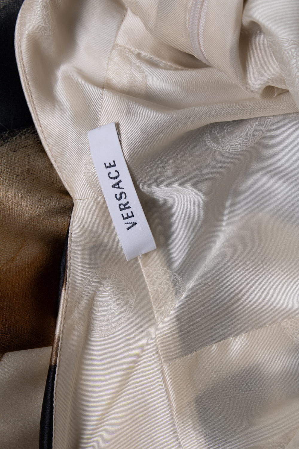 • Versace, zijden jurk met bolero. Het artikel verkeert in goede staat. Vlek op de voorkant.