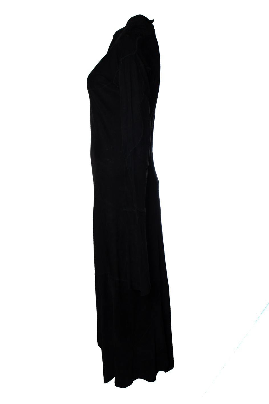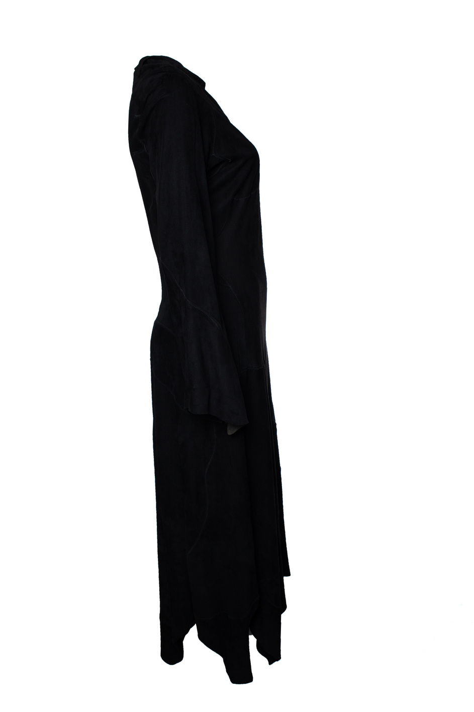 • Yohji Yamamoto, suède maxi-jurk in zwart. Het artikel verkeert in zeer goede staat.