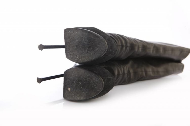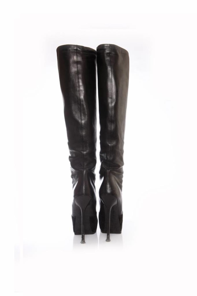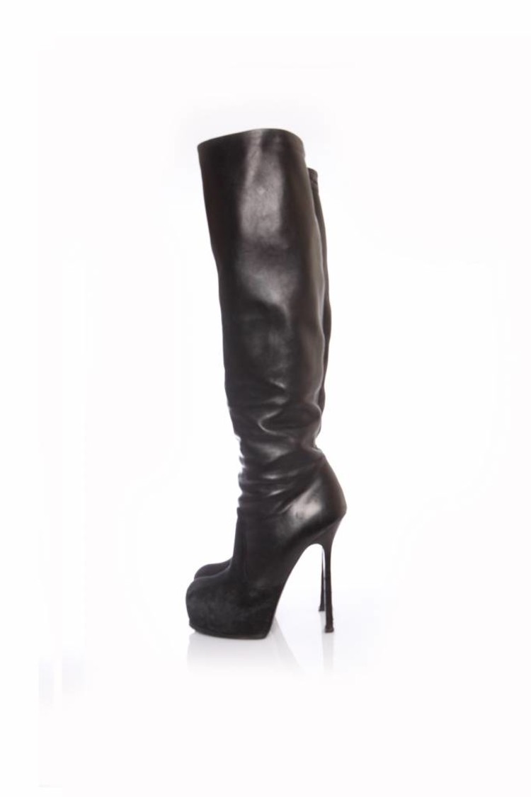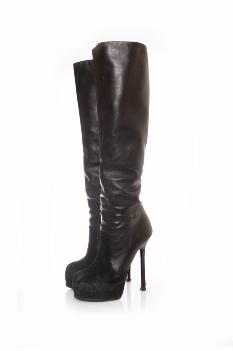 Yves Saint Laurent, zwart leren overknie tribute laarzen.