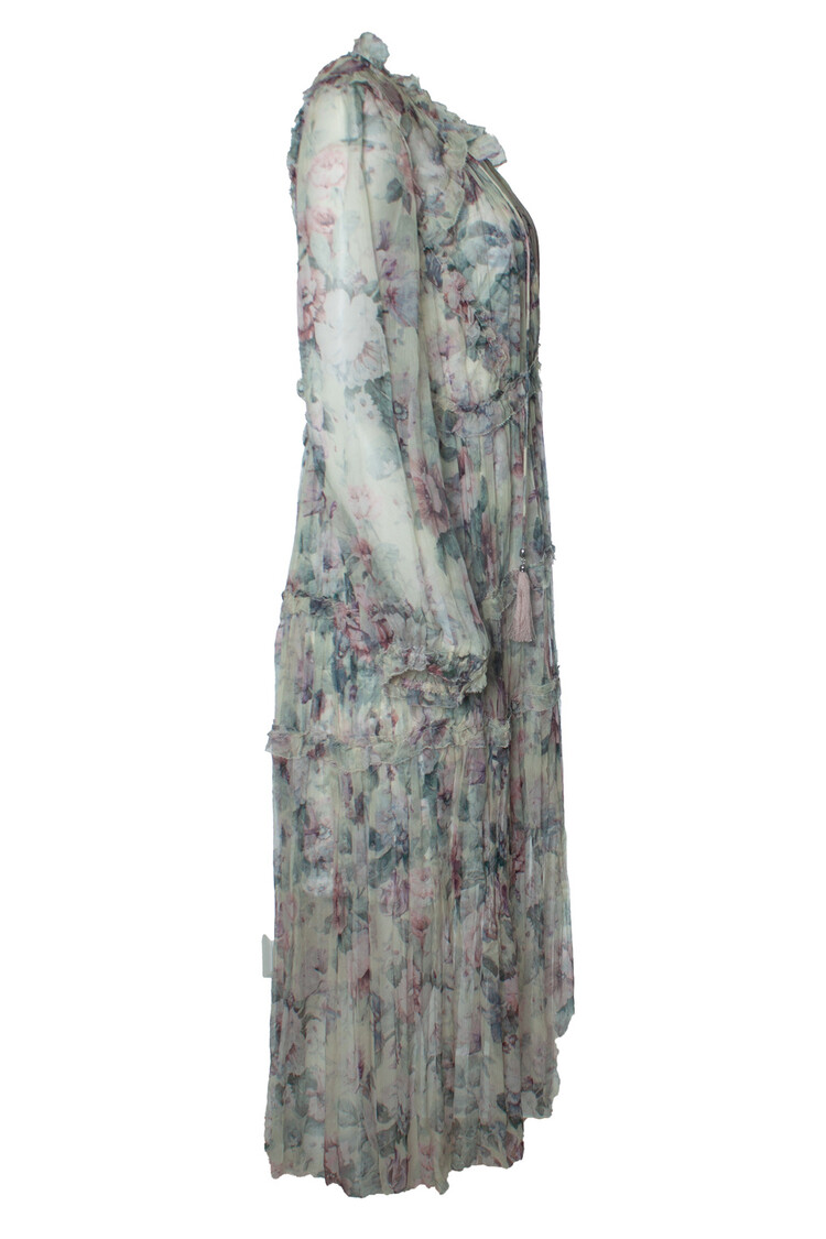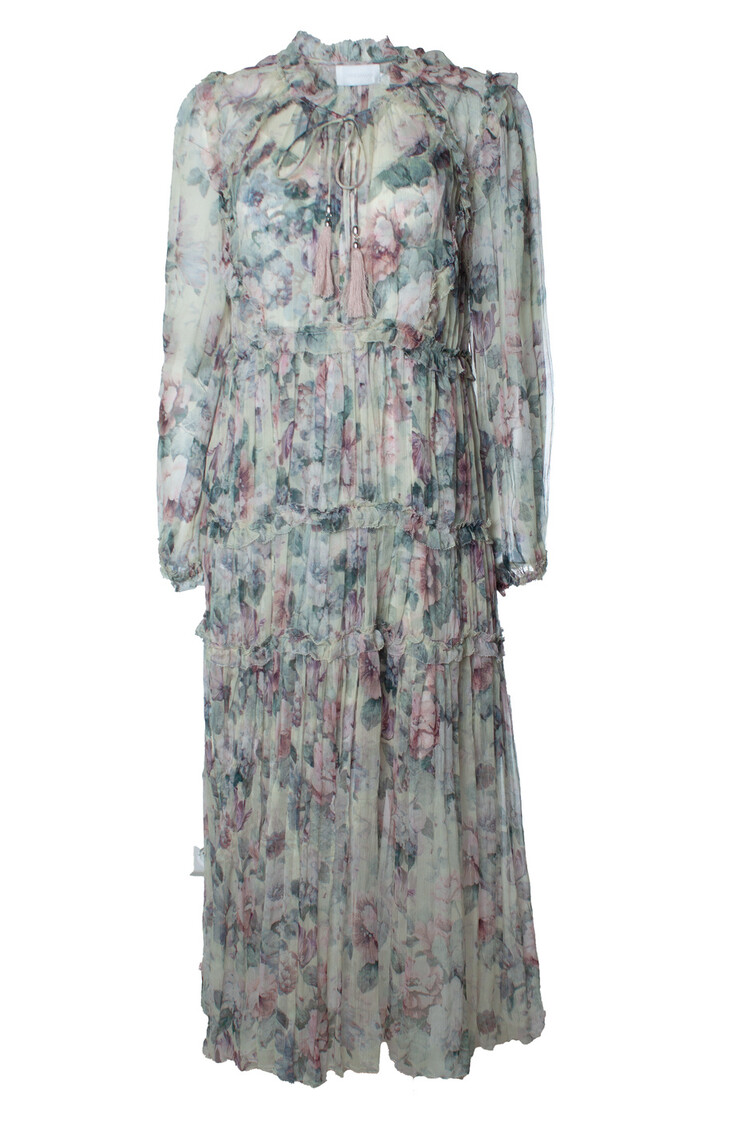 • Zimmermann, Jasper floral ruffle maxi dress in pastelkleuren. Het artikel is nieuw - ongedragen. Wordt geleverd met onderjurk.